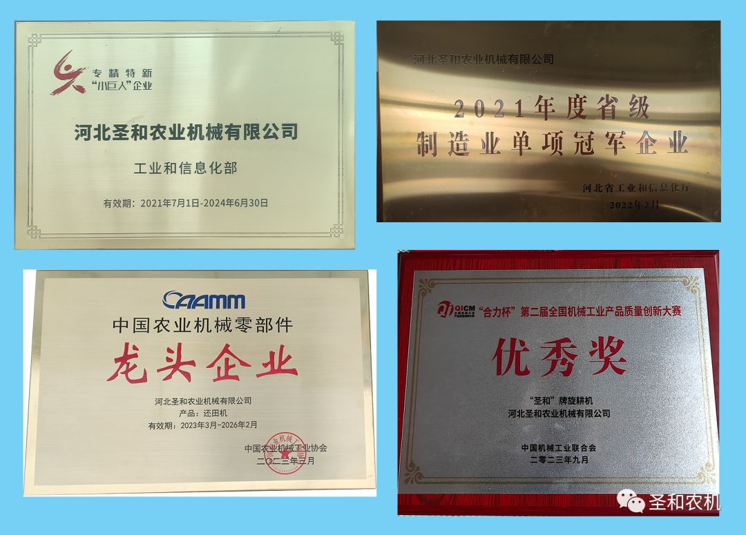 公司現(xiàn)為國家級專精特新“小巨人”企業(yè)、河北省“專精特新”示范企業(yè),省級制造業(yè)單項(xiàng)冠軍企業(yè),河北省首批縣域特色產(chǎn)業(yè)集群“領(lǐng)跑者”企業(yè)。公司擁有25項(xiàng)國家專利,參與制定多項(xiàng)國家標(biāo)準(zhǔn)。旗下?lián)碛?ldquo;圣和”、“普勞恩德”兩大品牌,產(chǎn)品遍布大江南北,行銷20多個國家和地區(qū)。其中旋耕機(jī)、還田機(jī)雙雙榮獲2022年度銷售冠軍,為中國耕整地機(jī)械行業(yè)的龍頭企業(yè)。
