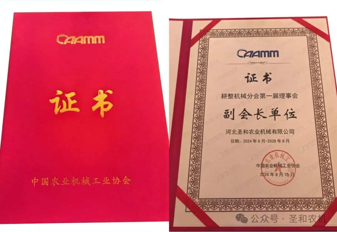 熱烈慶祝圣和公司當選耕整機械分會第一屆理事會副會長單位