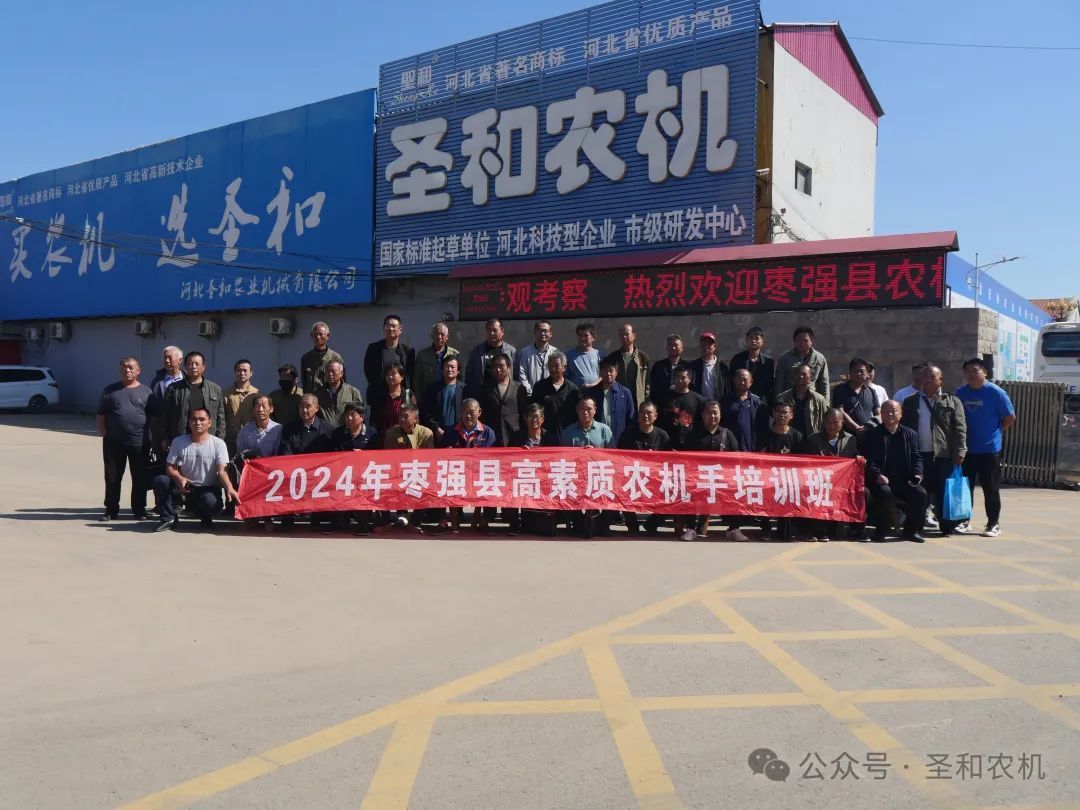 2024年9月22日,棗強(qiáng)縣農(nóng)業(yè)農(nóng)村局2024年棗強(qiáng)縣高素質(zhì)農(nóng)機(jī)手培訓(xùn)班到河北圣和農(nóng)業(yè)機(jī)械有限公司參觀學(xué)習(xí)。圣和公司董事長(zhǎng)王新芳攜公司各級(jí)領(lǐng)導(dǎo)熱情接待。