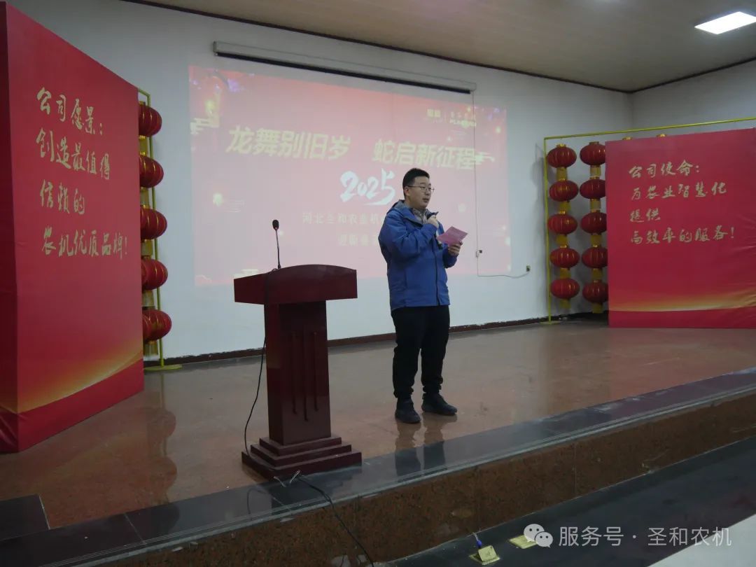 2025年1月24日,河北圣和農(nóng)業(yè)機(jī)械有限公司在公司培訓(xùn)大廳,隆重舉辦了以“龍舞別舊歲,蛇啟新征程”為主題的2025年迎春茶話會。此次茶話會旨在總結(jié)過去一年的工作成績,展望新一年的發(fā)展目標(biāo),同時(shí)增進(jìn)員工之間的交流與友誼,營造和諧融洽的企業(yè)文化氛圍。