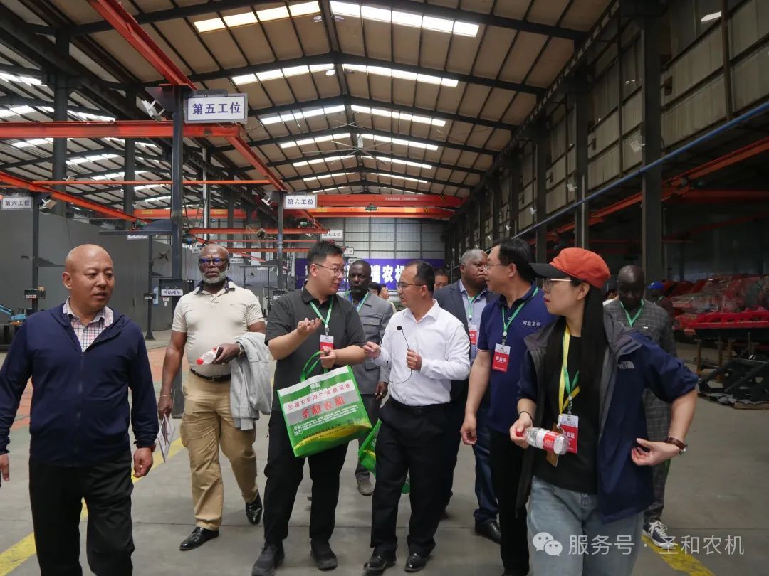 在營銷管理中心總經理郭廣彥的陪同下,代表團先后參觀了生產車間、檢測中心和產品展示區(qū)。在生產車間,先進的生產設備和高效的生產流程讓代表團成員贊嘆不已。他們詳細了解了農業(yè)機械的生產工藝和質量控制體系,對圣和公司嚴格的生產管理和精湛的制造工藝表示高度認可。