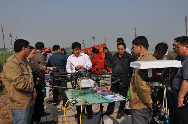 4月29日,我公司與西安鯤化航空科技有限公司聯(lián)合研制的“無人植保飛機(jī)”與河北威遠(yuǎn)生化有限公司達(dá)成共識(shí),在藁城展開了一次“無人植保飛機(jī)實(shí)地藥物防治試驗(yàn)示范”現(xiàn)場(chǎng)會(huì)。到場(chǎng)參觀的有農(nóng)業(yè)局局長(zhǎng)趙勝哲、省植保站楊炎杰、市植保站王維蓮、圣和董事長(zhǎng)王新芳、威遠(yuǎn)生化農(nóng)藥總經(jīng)理范朝輝,農(nóng)業(yè)局局長(zhǎng)等領(lǐng)導(dǎo)在觀摩機(jī)具作業(yè)后,給予了高度評(píng)價(jià)。