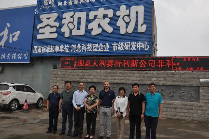 2017年6月13日,天空時不時下著小雨,在這小麥收割的農忙時節(jié),來自意大利賽特利斯公司菲利普先生及鐘振修先生到圣和公司參觀洽談,受到圣和公司董事長王新芳及總經理師西峰熱情接待,并全程陪同詳細介紹了圣和公司企業(yè)發(fā)展及產品制作流程。菲利普先生剛進圣和就被圣和公司的企業(yè)文化深深吸引,在文化墻上仔細聽取鐘先生的翻譯,用我們聽不懂的意大利語表達并連連點頭,隨后董事長王新芳講解了企業(yè)文化的內涵、組織架構和未來的規(guī)劃生產流程和銷售網絡等等,做了簡單的講解,菲利浦先生認真聽取也對圣和有了初步的了解,并對王總的發(fā)展經營理念表示贊同,隨后參觀了公司展廳對產品的技術問題進行了相關討論,并對公司的熱銷產品和設計給予了高度評價和贊嘆!王總非常愉快的與飛利浦先生共進午餐,飛利浦先生也對圣和公司的熱情好客表示非常的滿意,他表示從企業(yè)文化就能看出圣和公司是一個特別有責任感和使命感的年輕企業(yè),愿與此深入了解和合作,建立友誼與互信,并高興地在公司門前合影留念。