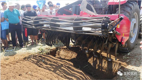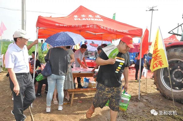 其中五款展示機(jī)具:1SS-280A型深松機(jī)、1GQNM-230型雙軸滅茬旋耕機(jī)、4U-170型藥材收獲機(jī)、1JQ-200型秸桿切碎還田(圣和)、1GKNJG-250A型高箱框架旋耕機(jī)(普勞恩德)。