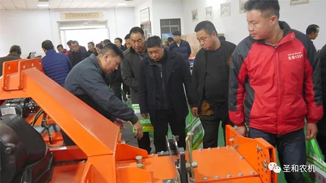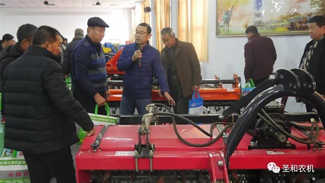 公司營銷總經(jīng)理張培增帶領(lǐng)團(tuán)隊熱情接待,培訓(xùn)班學(xué)員首先來到展廳,觀摩了解不同型號農(nóng)機(jī)具的特點(diǎn),并與相關(guān)技術(shù)人員深入探討交流。