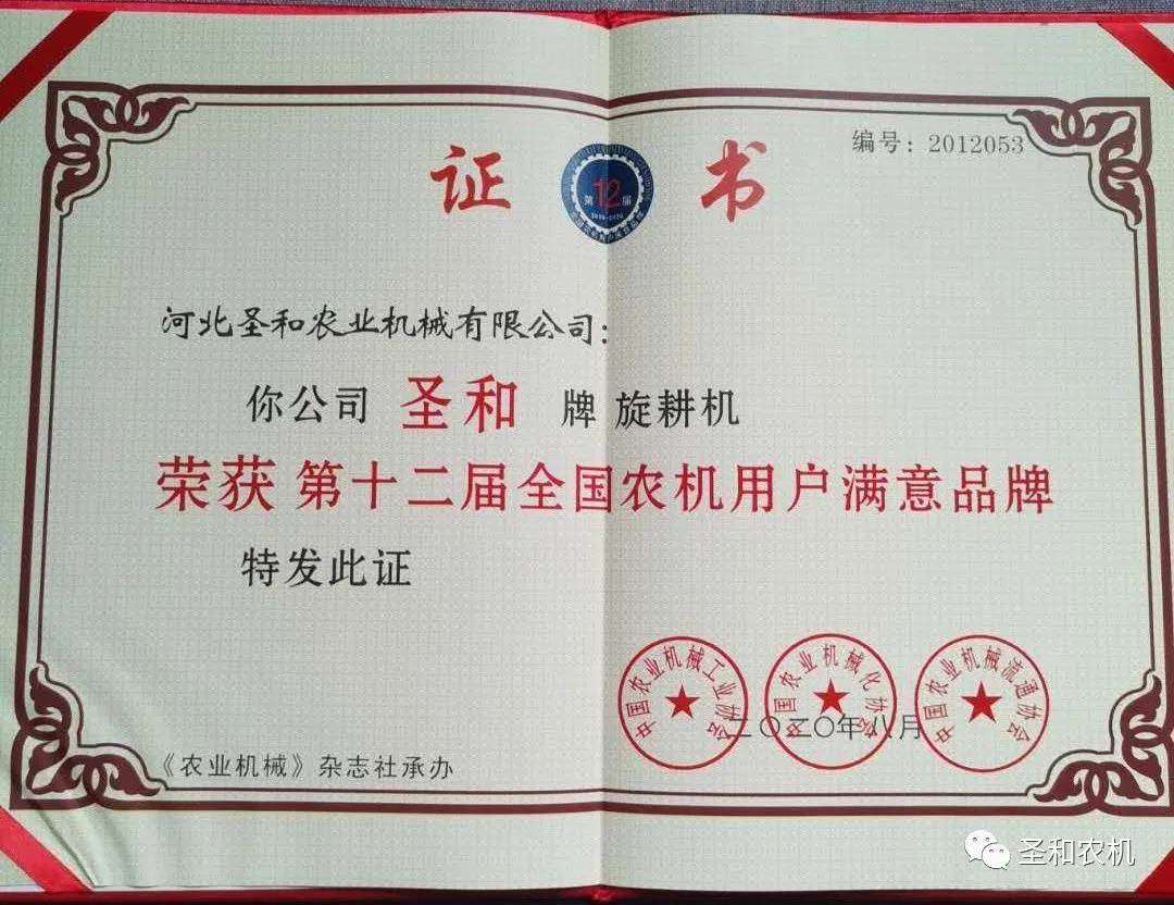 全國農(nóng)機用戶滿意品牌評選作為農(nóng)業(yè)行業(yè)里具有廣泛影響力的活動之一,得到了廣大農(nóng)民朋友的認可和農(nóng)機企業(yè)積極參與。獲獎是對圣和辛勤耕耘的肯定,是激勵圣和不斷進步的動力,圣和將不斷創(chuàng)新產(chǎn)品提升質(zhì)量,為農(nóng)機行業(yè)作出貢獻,農(nóng)民的期待就是我們的發(fā)展方向。圣和將不辱使命,以民需為本,做中國好農(nóng)機,創(chuàng)造最值得信賴的優(yōu)質(zhì)農(nóng)機品牌!