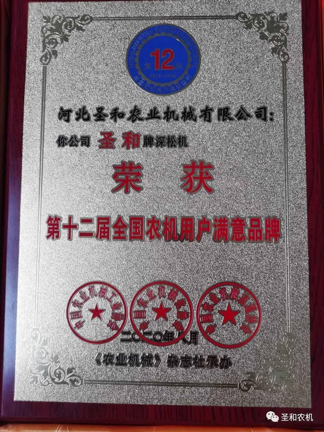 “第十二屆全國農(nóng)機用戶滿意品牌”大獎!