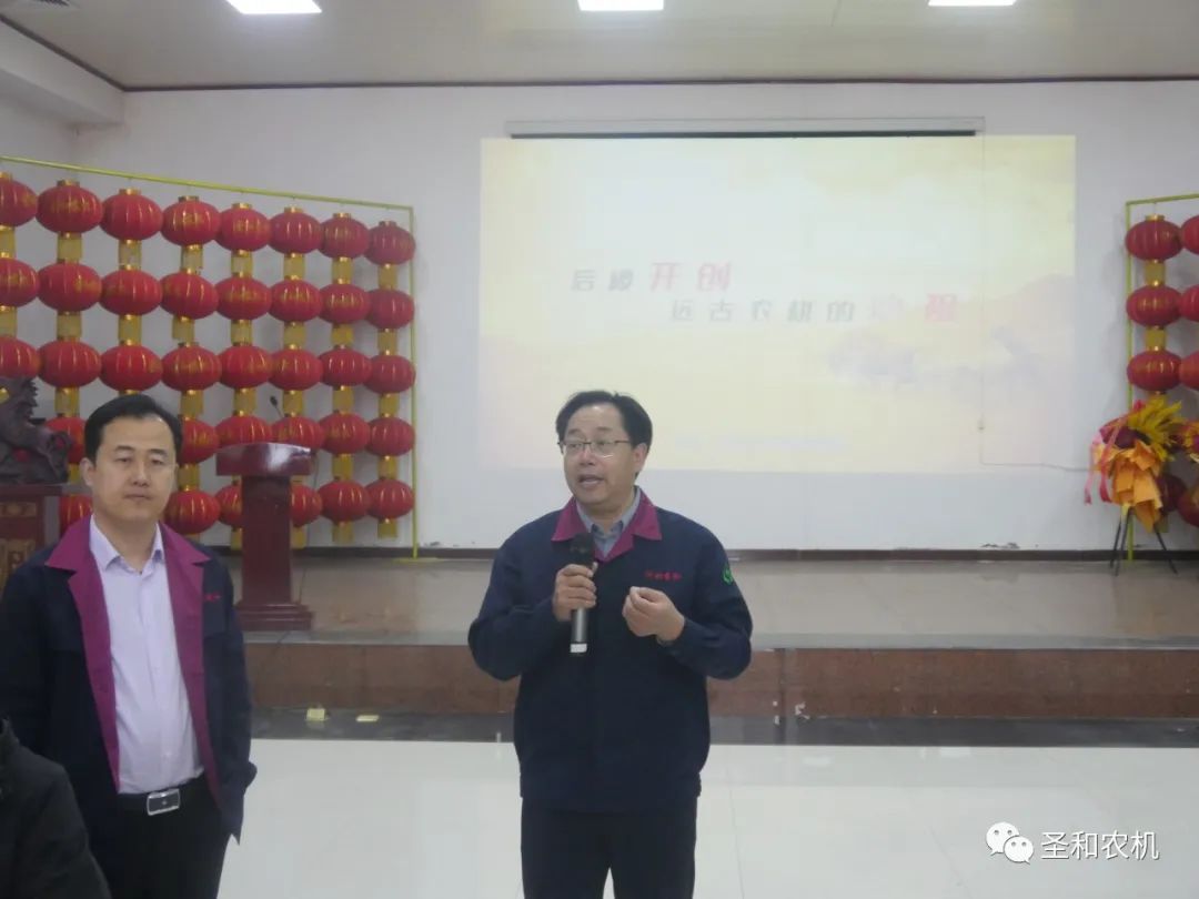 參觀結(jié)束后,營銷管理中心總經(jīng)理郭廣彥發(fā)表致詞,對大家的到來表示歡迎,圣和的發(fā)展離不開廣大客戶的支持,圣和將為大家生產(chǎn)優(yōu)質(zhì)農(nóng)機(jī),做好品牌,與大家合作共贏。