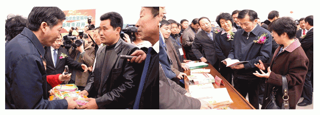 陳曉華來(lái)到農(nóng)業(yè)部農(nóng)機(jī)鑒定總站咨詢臺(tái)察看宣傳資料,當(dāng)看到《2009年—2010年國(guó)家支持推廣的農(nóng)業(yè)機(jī)械產(chǎn)品目錄》《假冒偽劣農(nóng)機(jī)產(chǎn)品表現(xiàn)形式和判斷方法》《農(nóng)機(jī)用戶購(gòu)機(jī)指南》等宣傳資料時(shí),高興地對(duì)在站在身邊的農(nóng)業(yè)部農(nóng)機(jī)鑒定總站國(guó)彩同副書記說(shuō):“這幾本宣傳資料都很好,國(guó)家今年上百億的農(nóng)機(jī)補(bǔ)貼需要農(nóng)機(jī)部門好好幫助農(nóng)民把好產(chǎn)品質(zhì)量關(guān),這本《農(nóng)機(jī)用戶購(gòu)機(jī)指南》小冊(cè)子實(shí)用還方便,購(gòu)機(jī)農(nóng)民應(yīng)該會(huì)喜歡。”“總站已連續(xù)8年編印了《農(nóng)機(jī)用戶購(gòu)機(jī)指南》,每年的‘3·15’我們都放免費(fèi)發(fā)給農(nóng)民朋友,很受歡迎。”農(nóng)業(yè)部農(nóng)機(jī)化管理司副司長(zhǎng)劉憲介紹道。