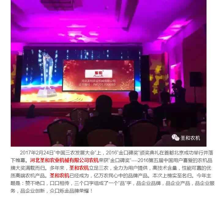 圣和農(nóng)機--“金口碑獎”中國用戶喜愛的農(nóng)機品牌