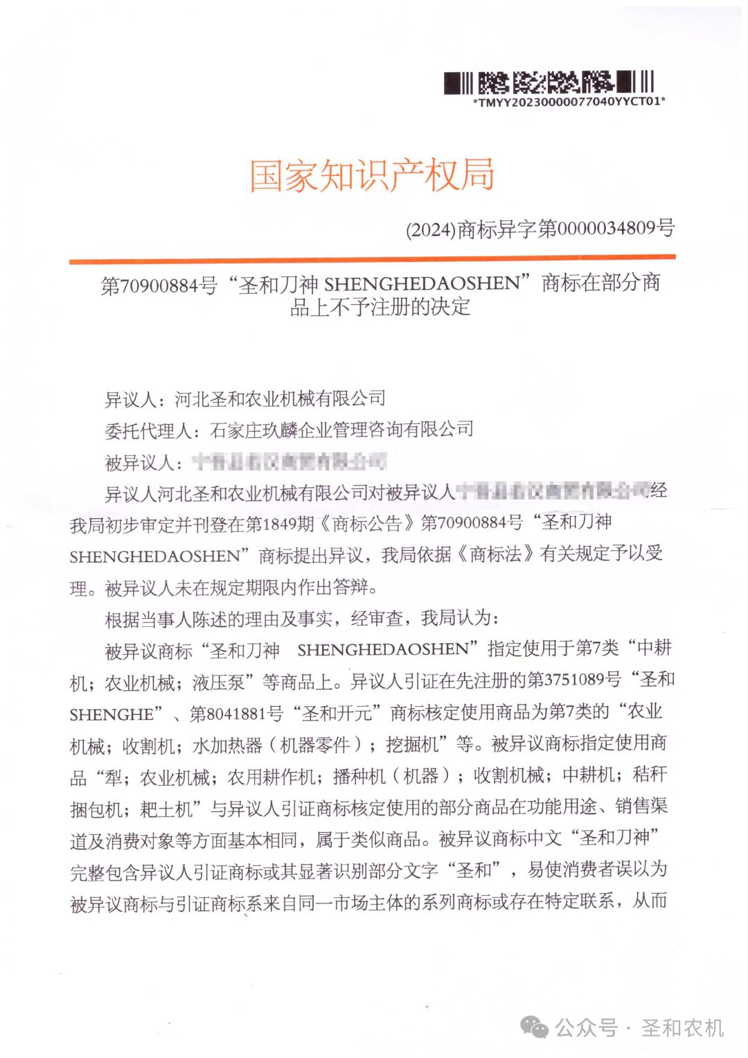 近年來,國家知識產(chǎn)權(quán)局從源頭治理,對商標(biāo)惡意搶注行為實(shí)施部門聯(lián)動、精準(zhǔn)打擊,依法維護(hù)了市場主體的公平競爭,為營造良好的知識產(chǎn)權(quán)法治環(huán)境、市場環(huán)境和社會環(huán)境提供了保障。近日,國家知識產(chǎn)權(quán)局作出了不予核準(zhǔn)“圣和刀神”商標(biāo)注冊的決定【(2024)商標(biāo)異字第0000034809號】,就是打擊商標(biāo)惡意搶注行為的一次意志體現(xiàn)。