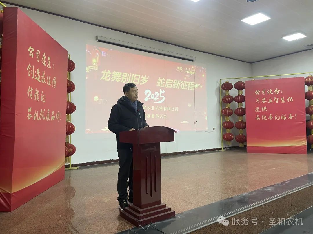 2025年1月24日,河北圣和農(nóng)業(yè)機(jī)械有限公司在公司培訓(xùn)大廳,隆重舉辦了以“龍舞別舊歲,蛇啟新征程”為主題的2025年迎春茶話會。此次茶話會旨在總結(jié)過去一年的工作成績,展望新一年的發(fā)展目標(biāo),同時(shí)增進(jìn)員工之間的交流與友誼,營造和諧融洽的企業(yè)文化氛圍。