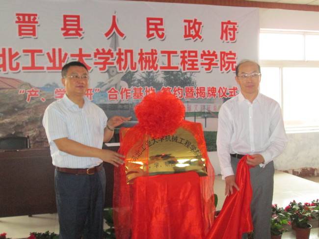 2013年6月8日,河北工業(yè)大學(xué)機械工程學(xué)院產(chǎn)、學(xué)、研合作基地簽約暨揭牌儀式, 學(xué)院黨委書記張成德、戴士杰副院長、副縣長攸超、縣工信局白志芬局長、大陸村鎮(zhèn)黨委書計蔡侗江、鎮(zhèn)長宋瑞剛一同出席了揭牌儀式.