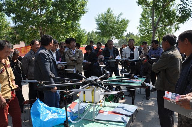 5月5日,我公司與西安鯤化聯(lián)合研制的無人植保飛機(jī)在晉州登場亮相,此次參觀試驗(yàn)的有晉州市劉市長、石家莊市植保站王維蓮站長、我公司董事長王新芳、威遠(yuǎn)生化植保營銷中心總經(jīng)理應(yīng)曉東等公司領(lǐng)導(dǎo)及當(dāng)?shù)卮迕窈秃献魃?0多人觀摩;在本次試驗(yàn)會上,展示的無人飛機(jī)一個(gè)用于小麥藥效防治工作、一個(gè)用于全程跟蹤航拍工作。