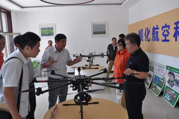 8月14日,在我公司董事長王新芳的陪同下“中國農業(yè)機械化協(xié)會副會長、航空分會會長”楊林、省推廣站站長孫東法、邢臺市農機局領導及我縣主抓農業(yè)縣長張鵬等一同參觀了圣和廠部,航空分會會長楊林及各領導對我公司與西安鯤化航空科技有限公司聯(lián)合研制的“KH-86無人植保飛機”給予了充分的肯定;并提倡科技創(chuàng)新,農業(yè)現代化的轉型。