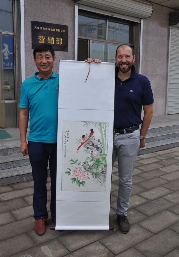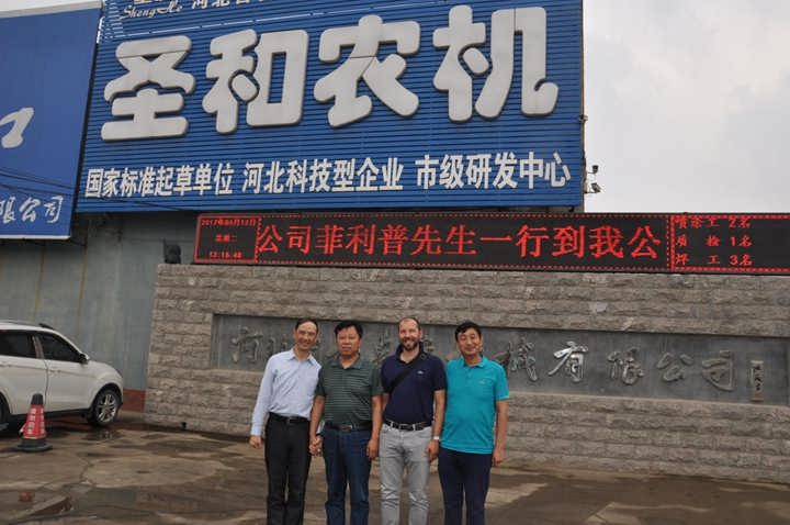下午在董事長王新芳與總經理師西峰陪同下觀看了企業(yè)宣傳片,隨后參觀了生產現場,菲利普先生在參觀過程中時時拿出手機不停地照相并對圣和的管理以及發(fā)展表示驚嘆,一個農機企業(yè)可以做到這些真的很不容易,王總詳細講解了產品制作過程和現在設備的先進性,從自動化焊接、數控折彎、大型壓力機到激光切割機、智能化噴涂線、國際先進的流水組裝線,圣和公司一步步依靠實力和技術手段,不斷地提高產品質量,升級產品技術,提高行業(yè)市場競爭力,夯實產品品質和研發(fā)新產品!近年來在不斷進取的努力下,圣和產品不斷地改變過去傳統(tǒng)的制作流程和銷售模式,與德國普勞恩德PLAUERN(河北)農業(yè)機械有限公司合作,技術資源共享,在產品品質和質量上上了一個很大的臺階,特別是散件組裝產品的生產和技術打破傳統(tǒng),引領行業(yè),早已成為業(yè)內佳話。菲利普先生與鐘振修先生紛紛表示圣和的實力著實令人驚嘆,他們也和王總一樣有著共同的信仰,圣和十年的快速發(fā)展,用很短的時間是很難體會的,正是圣和用心做事的風范,圣和員工的認真負責,對工作的認真態(tài)度和標準化的準則保證著各個生產線線線相接,這在一般企業(yè)是很難看到的,也是少有的,愿與圣和建立更進一步的交流與合作。王總表示道:今后圣和公司也會更好地立足、緊貼中國農機市場,高效開發(fā)適應中國差異化的優(yōu)質農業(yè)機械、快速應對客戶需求,以優(yōu)良的品質、合理的價格、良好的信譽、完善的服務,不斷創(chuàng)造和研發(fā)實用性強的新產品,為促進中國農業(yè)進一步發(fā)展,夯實基礎,服務三農!最后雙方在非常愉快友好的氛圍下達成了初步合作意向,董事長王新芳臨別贈送了菲利普先生和鐘振修先生具有中國特色的工筆畫表示圣和對菲利普先生的熱情歡迎。