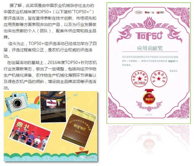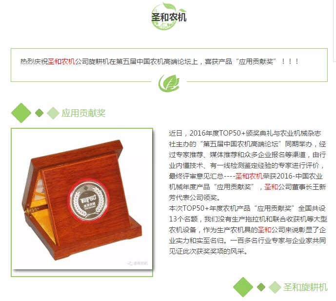 熱烈慶祝圣和農(nóng)機(jī)喜獲--中國農(nóng)機(jī)產(chǎn)品“應(yīng)用貢獻(xiàn)