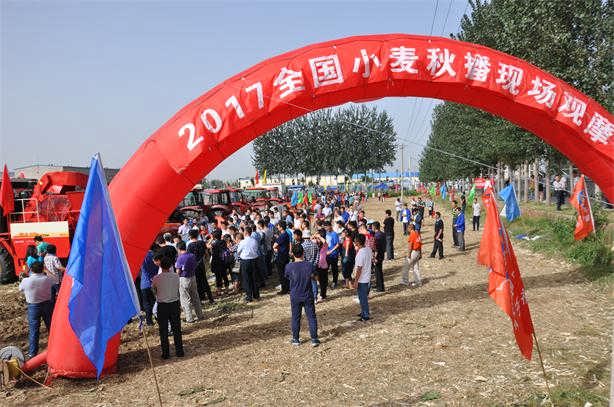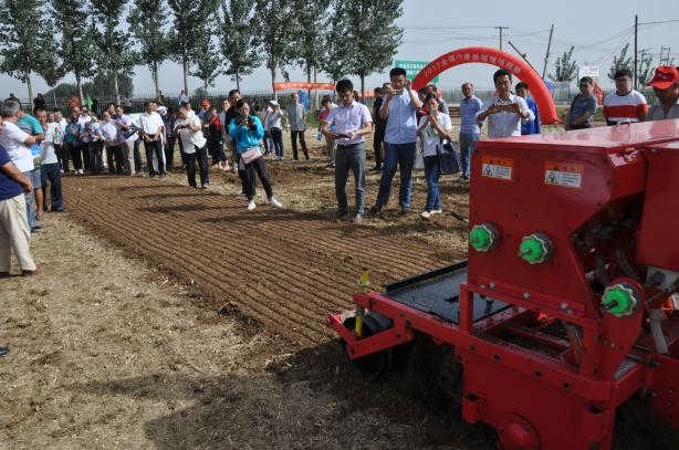2017年9月22日,全國小麥秋播現(xiàn)場(chǎng)觀摩暨技術(shù)培訓(xùn)班在石家莊市辛集市隆重舉行。此次觀摩會(huì)由農(nóng)業(yè)部全國農(nóng)技中心主辦,河北省農(nóng)業(yè)技術(shù)推廣總站牽頭,河北省農(nóng)機(jī)修造站承辦。來自天津、河北、山西、上海、江蘇、安徽、山東、河南、陜西、湖北、重慶、四川、甘肅、貴州等?。ㄗ灾螀^(qū)、直轄市)農(nóng)業(yè)技術(shù)推廣站(總站)代表、有關(guān)專家等200余人參加了此次觀摩會(huì)。圣和農(nóng)機(jī)攜旗下播種神器---2BFSG-12(12)(200)深松旋耕施肥撒播機(jī)亮相并且現(xiàn)場(chǎng)作業(yè)演示。