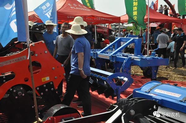 其中五款展示機(jī)具:1SS-280A型深松機(jī)、1GQNM-230型雙軸滅茬旋耕機(jī)、4U-170型藥材收獲機(jī)、1JQ-200型秸桿切碎還田(圣和)、1GKNJG-250A型高箱框架旋耕機(jī)(普勞恩德)。