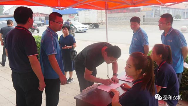隨后大家在培訓(xùn)中心進(jìn)行了深入交流。公司董事長(zhǎng)王新芳給大家介紹了圣和公司核心管理團(tuán)隊(duì)成員,并致歡迎辭。王總分享了公司經(jīng)營(yíng)理念,同時(shí)給朋友們提出四點(diǎn)建言:一、是隨著農(nóng)機(jī)行業(yè)發(fā)展,大家要團(tuán)結(jié)起來(lái),共謀發(fā)展。二、是管好自己的錢袋子,別亂花錢亂投資。三、是以打造區(qū)域品質(zhì)為目標(biāo),把好產(chǎn)品提供給農(nóng)機(jī)手。四、是一定要抱住政府項(xiàng)目大腿,搞好農(nóng)機(jī)推廣服務(wù)工作,做好政策對(duì)接!