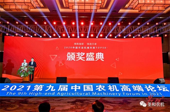 河北圣和農(nóng)業(yè)機械有限公司榮獲2020中國農(nóng)業(yè)機械年度TOP50+最具影響力自主品牌“金禾獎”,河北圣和農(nóng)業(yè)機械有限公司營銷管理中心總經(jīng)理郭廣彥上臺領(lǐng)獎。