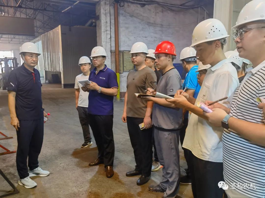 2022年7月31日,圣和公司董事長王新芳在晨會(huì)后帶領(lǐng)營銷中心員工到一線生產(chǎn)現(xiàn)場學(xué)習(xí)產(chǎn)品生產(chǎn)工藝流程,